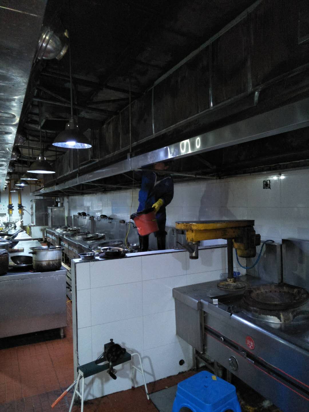 煙道是賓館、酒樓廚房的基礎(chǔ)設(shè)施,極易藏污納垢,是清理的死角。同時(shí)煙道是消防、衛(wèi)生、防疫部門(mén)檢查的重點(diǎn)區(qū)域.煙道、煙罩若不經(jīng)常清洗,積油越積越多,順著煙罩自然倒流,不僅影響飯菜質(zhì)量,而且還有損酒店信譽(yù)。同時(shí),煙道中易寄生老鼠、蟑螂,不符合國(guó)家衛(wèi)生標(biāo)準(zhǔn).油膩膠狀物長(zhǎng)期扒附在金屬表面,還會(huì)腐蝕金屬材料,縮短煙道使用壽命。由于酒店食堂廚房排煙罩因長(zhǎng)期積油,煙道、煙罩常年處于高溫工作環(huán)境,油煙氣化形成積油、積炭或油膩的膠狀物。很容易引起火災(zāi)。使用專(zhuān)用的煙道、煙罩清潔劑,對(duì)煙道金屬材料清潔后,能在材料表面附著一層保護(hù)膜.在攝氏80度時(shí),自動(dòng)散發(fā)二氧化碳阻止燃燒.徹底解決客戶(hù)的后顧之憂(yōu)。
