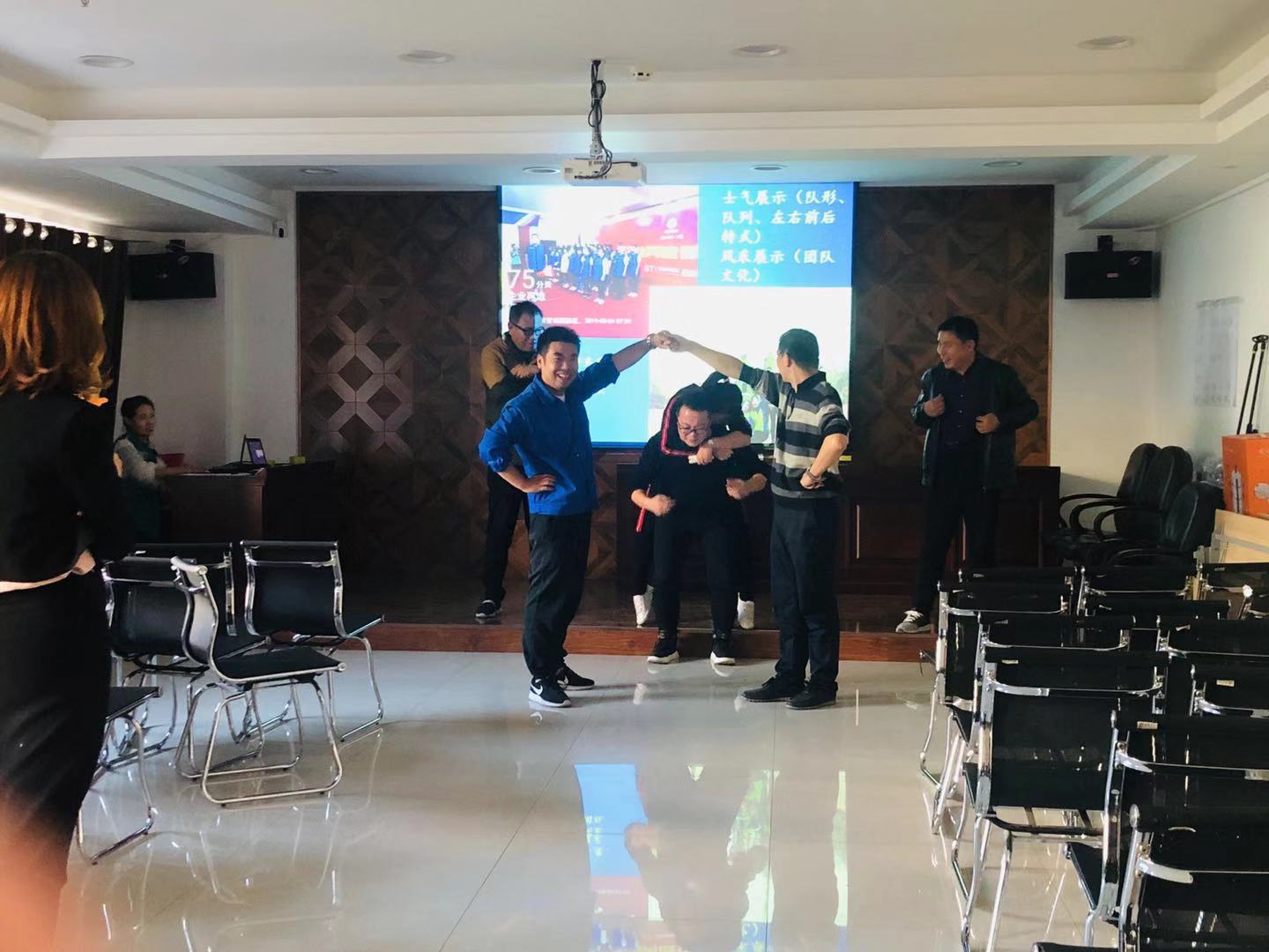 此次拓展訓練旨在進一步強化管理人員的團隊合作意識,參加活動人員分四組,在素質(zhì)拓展訓練指導老師的精心指導下,通過團隊成員的團結(jié)協(xié)作,先后完成了“小主人、小天使”“過AB門”“兩人三足”等一系列以激發(fā)個人潛能、熔煉團隊智慧為宗旨的室內(nèi)素質(zhì)拓展訓練項目。
