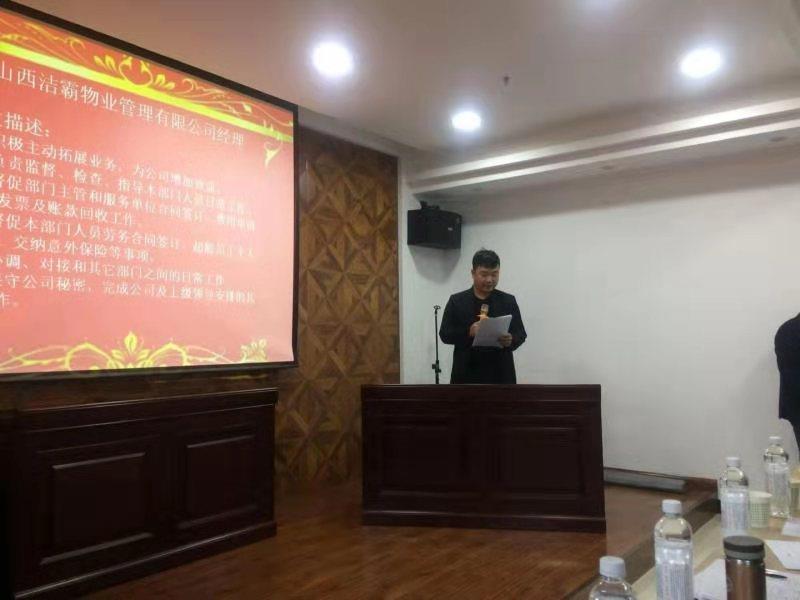12月20日下午,晉城市潔霸清潔服務(wù)股份有限公司開展中層管理人員競聘演講活動,公開競聘選拔物業(yè)管理公司經(jīng)理,運(yùn)營中心經(jīng)理,清潔用品超市店長3個職位的中層管理人員。公司領(lǐng)導(dǎo)班子成員和部分管理人員出席活動。