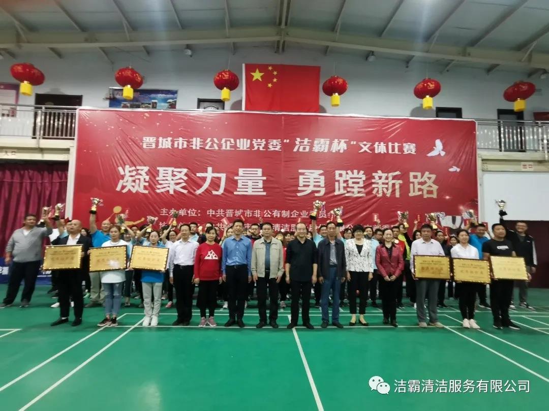 9月25日下午,晉城市非公企業(yè)黨委“潔霸杯”文體比賽落下帷幕。此次比賽由中共晉城市非公有制企業(yè)委員會主辦,中共晉城市潔霸清潔服務(wù)股份有限公司支部委員會冠名協(xié)辦。此次活動的主題是“凝聚力量 勇蹚新路”,旨在新中國成立71周年之際,全面展示非公企業(yè)黨組織開展群眾性體育活動的豐碩成果,以及廣大黨員干部創(chuàng)先爭優(yōu),奮發(fā)進(jìn)取,勇蹚新路,爭做時代先鋒的精神風(fēng)貌。