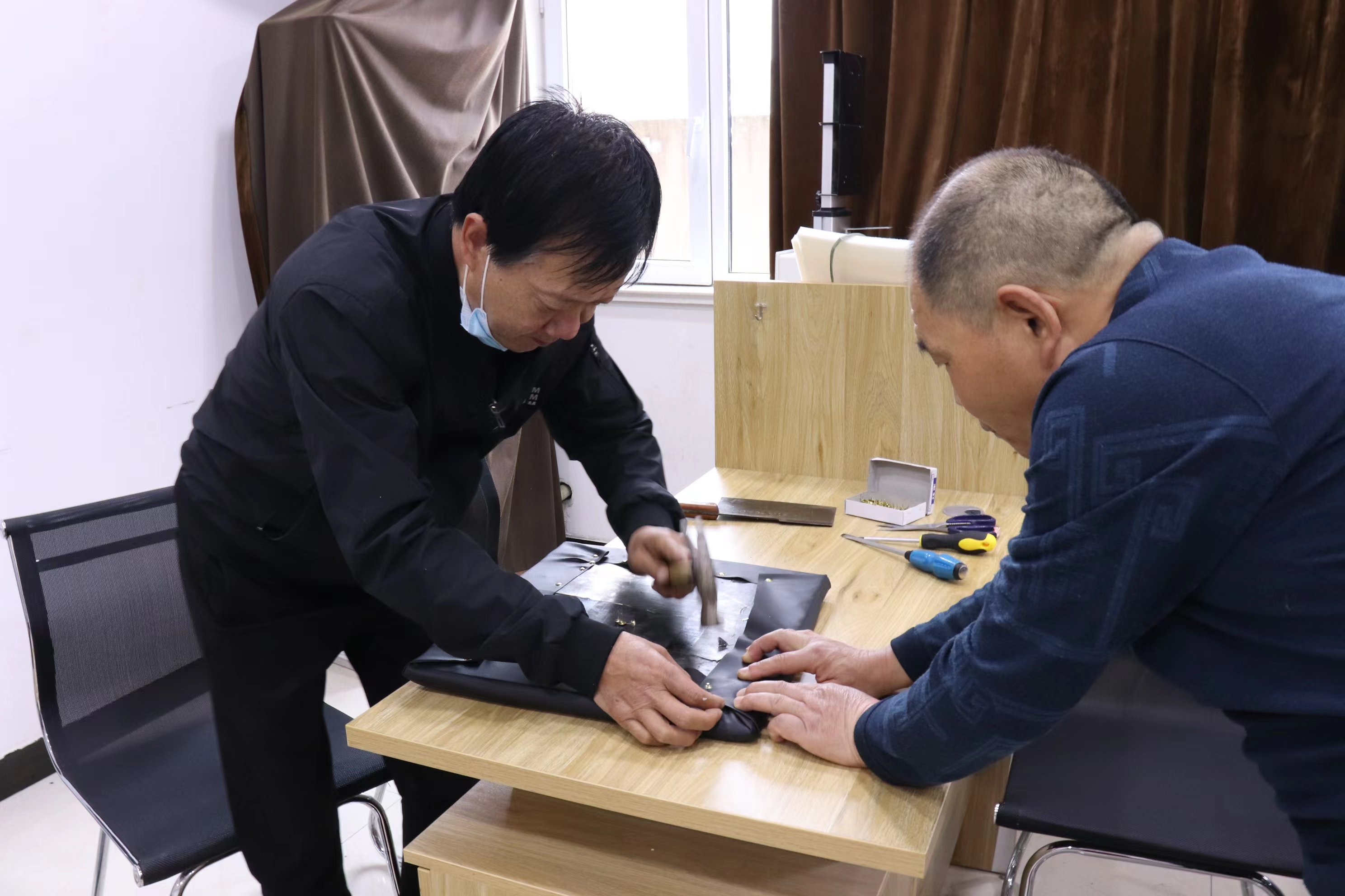 說(shuō)干就干。他們買來(lái)了海綿 、面料 、釘子,憑借衛(wèi)師傅以前的木工技術(shù)和田師傅現(xiàn)有的維修技能,對(duì)破損的椅子進(jìn)行了集中維修。叮叮當(dāng)當(dāng)……敲敲打打,手腳并用,不亦樂乎……