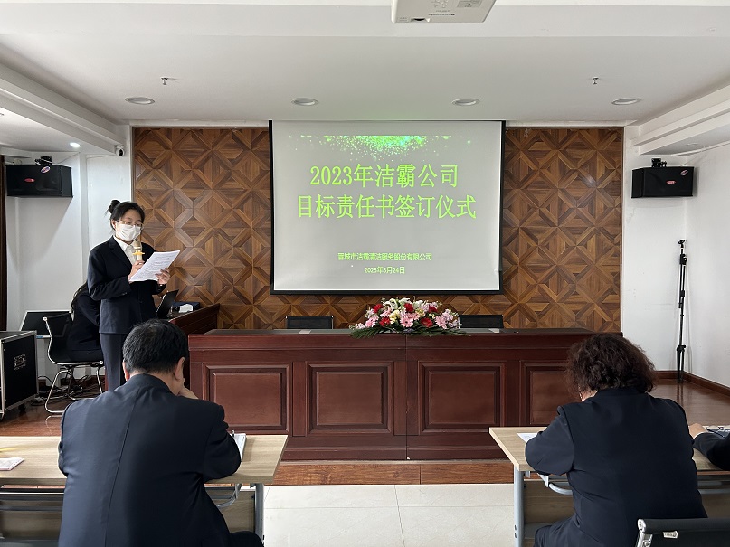 為進(jìn)一步提升目標(biāo)責(zé)任主體考核,壓實(shí)目標(biāo)責(zé)任,強(qiáng)化履職擔(dān)當(dāng),3月24日下午,晉城市潔霸清潔服務(wù)股份有限公司2023年目標(biāo)責(zé)任書簽訂儀式在公司黨群活動(dòng)中心舉行。公司管理層、各單位、部門經(jīng)理、主管及文員參加會(huì)議。
