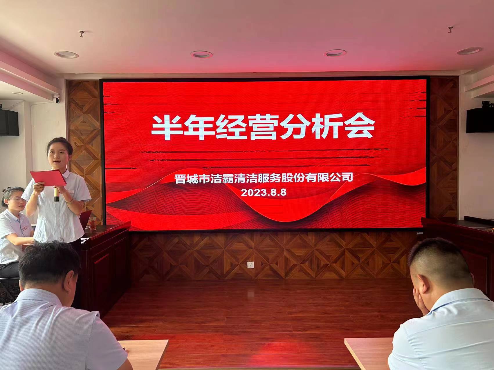 8月8日下午,晉城市潔霸清潔服務股份有限公司在黨群活動中心召開上半年經(jīng)營分析會議,總結(jié)上半年經(jīng)營運行情況,研判當前經(jīng)濟形勢,分析存在的矛盾和問題,找準薄弱環(huán)節(jié),研究制定應對措施和解決方案,并安排部署下半年的經(jīng)濟工作。公司總經(jīng)理程晉軍、副總經(jīng)理張永智、史志霞、張小梅出席會議,公司下屬各子公司、分公司經(jīng)理、各部門負責人及主管以上人員參加會議。