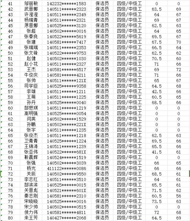 晉城市潔霸清潔服務(wù)股份有限公司職業(yè)技能等級(jí)認(rèn)定中心現(xiàn)將2024年2月3日認(rèn)定人員成績(jī)公示如下: